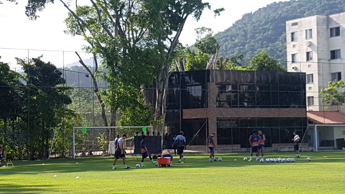 Boa tarde! Imprensa liberada no CT do Almirante. Andrey, Pikachu, Dudu, Bruno César, Danilo e Lucas Santos já em campo para treinar faltas. #gevas