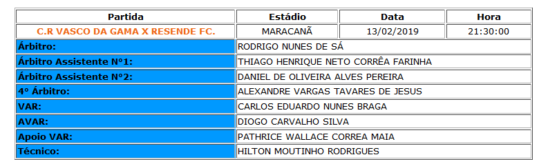 Rodrigo Nunes de Sá apitará Vasco x Resende