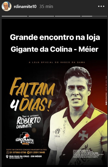 Roberto Dinamite estará na loja Gigante da Colina do Méier neste sábado