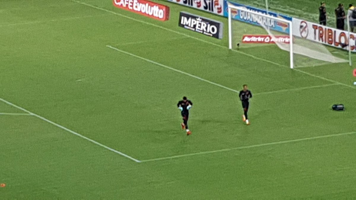 Fernando Miguel e Jordi se aquecem no gramado do Maracanã
