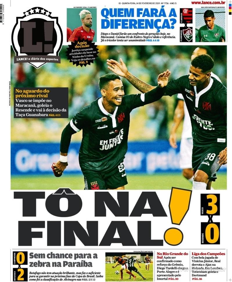 Na semifinal da Taça Guanabara, o Vasco derrotou o Resende por 3 a 0 e se classificou para a decisão da competição. Veja como a imprensa destacou a vitória vascaína e a homenagem às vítimas do incêndio no CT do Flamengo.