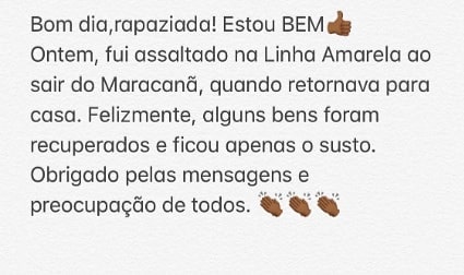 Jordi divulga comunicado no Instagram após assalto: 'Ficou apenas o susto'