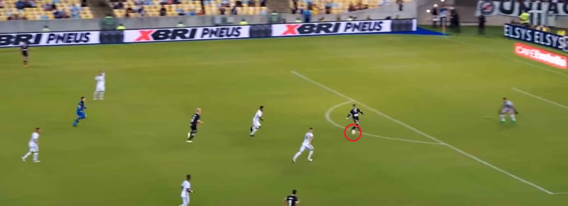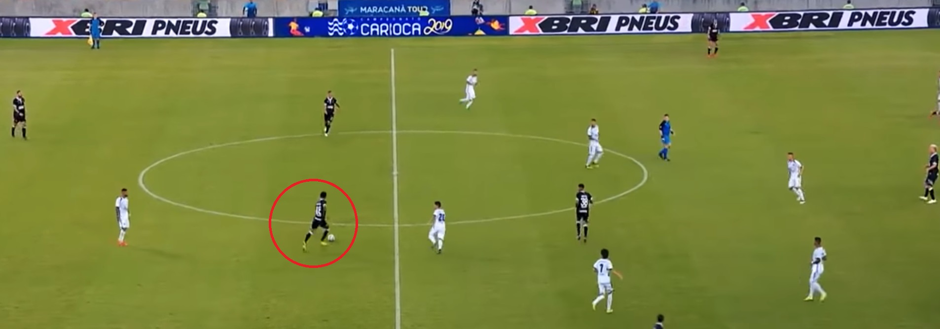 Nas fotos a seguir, observamos um lançamento do volante para Yago Pikachu, que resultou no gol de Marrony, o terceiro do Vasco contra o Resende pela semifinal da Taça Guanabara.