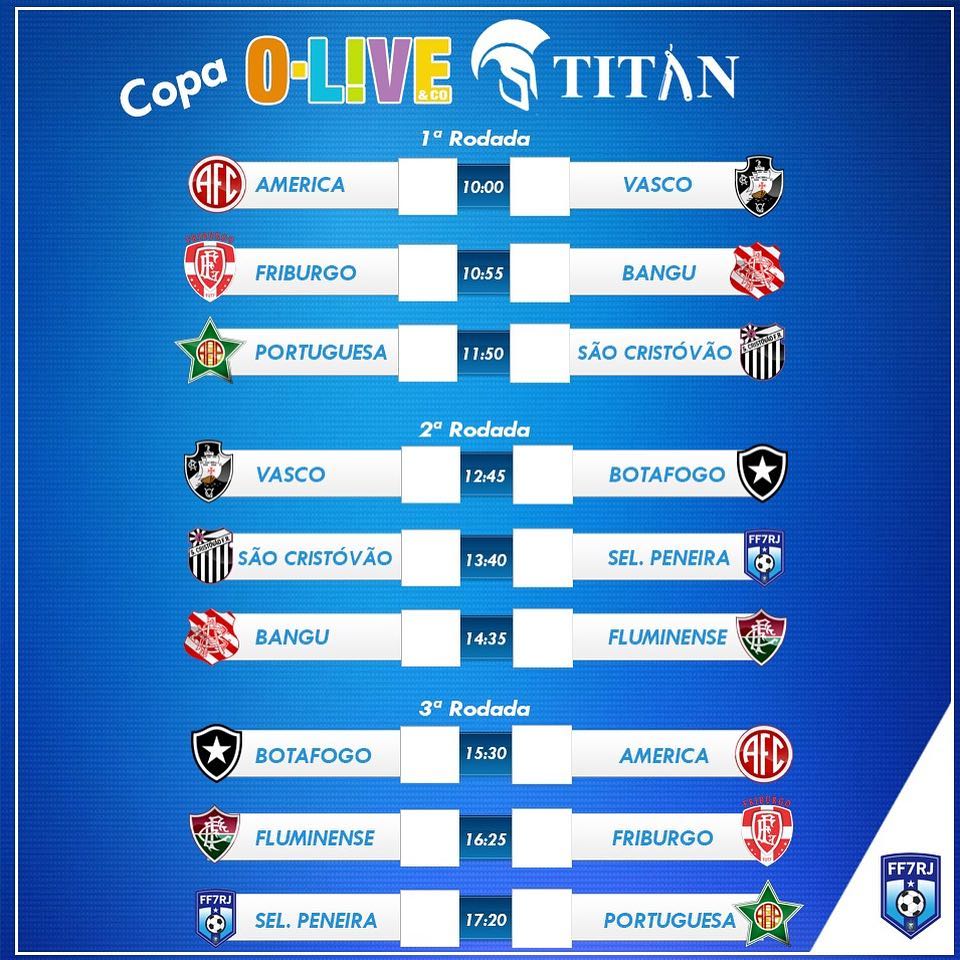Foram sorteados em arbitral realizado, na última quinta-feira (14), na TITAN Barbearia na Tijuca, Zona Norte do Rio de Janeiro, os grupos da Copa O-Live/Titan, a primeira competição oficial do calendário de 2019 da Federação de Futebol 7 do Rio de Janeiro.