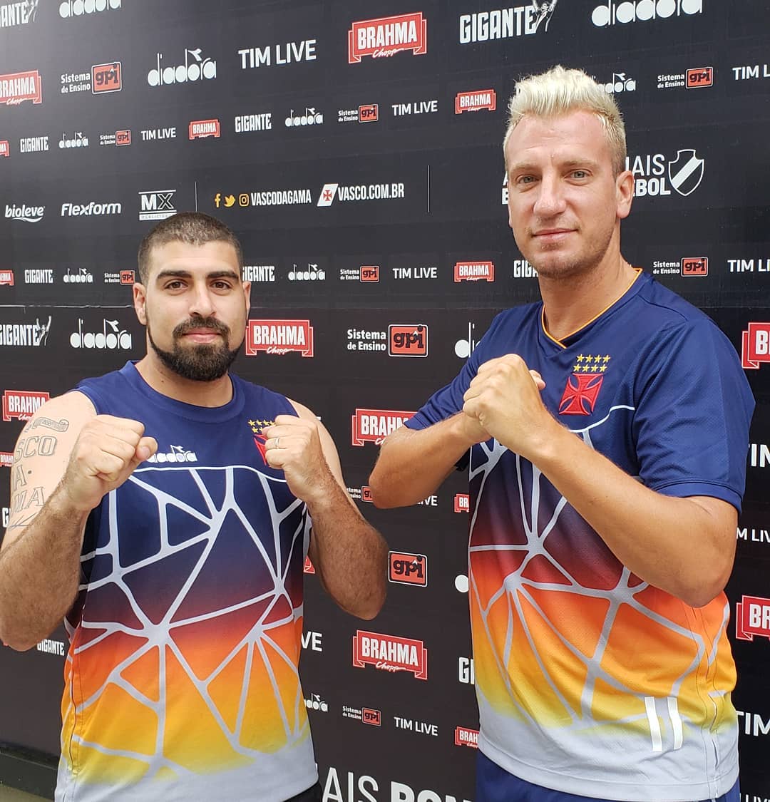 Maxi López posa para foto com Phill Jonathan, atleta de Kickboxing do Vasco