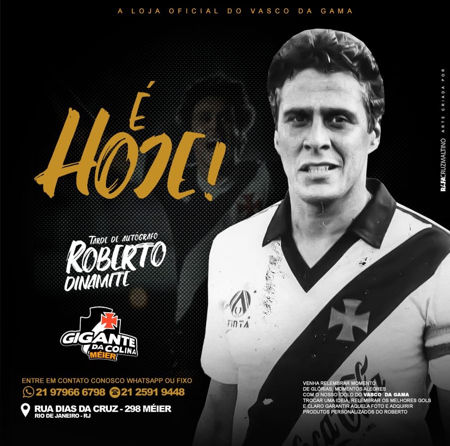 Roberto Dinamite fará tarde de autógrafos na loja Gigante da Colina do Méier neste sábado a partir das 11h