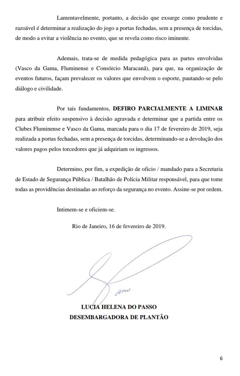 Desembargadora de plantão no TJRJ, Lúcia Helena do Passo determina portões fechados na final da Taça Guanabara entre Vasco e Fluminense, às 17h deste domingo, no Maracanã. A magistrada acolheu parcialmente recurso ajuizado pelo Cruz-Maltino. Espia a íntegra #lanceVAS #lanceFLU