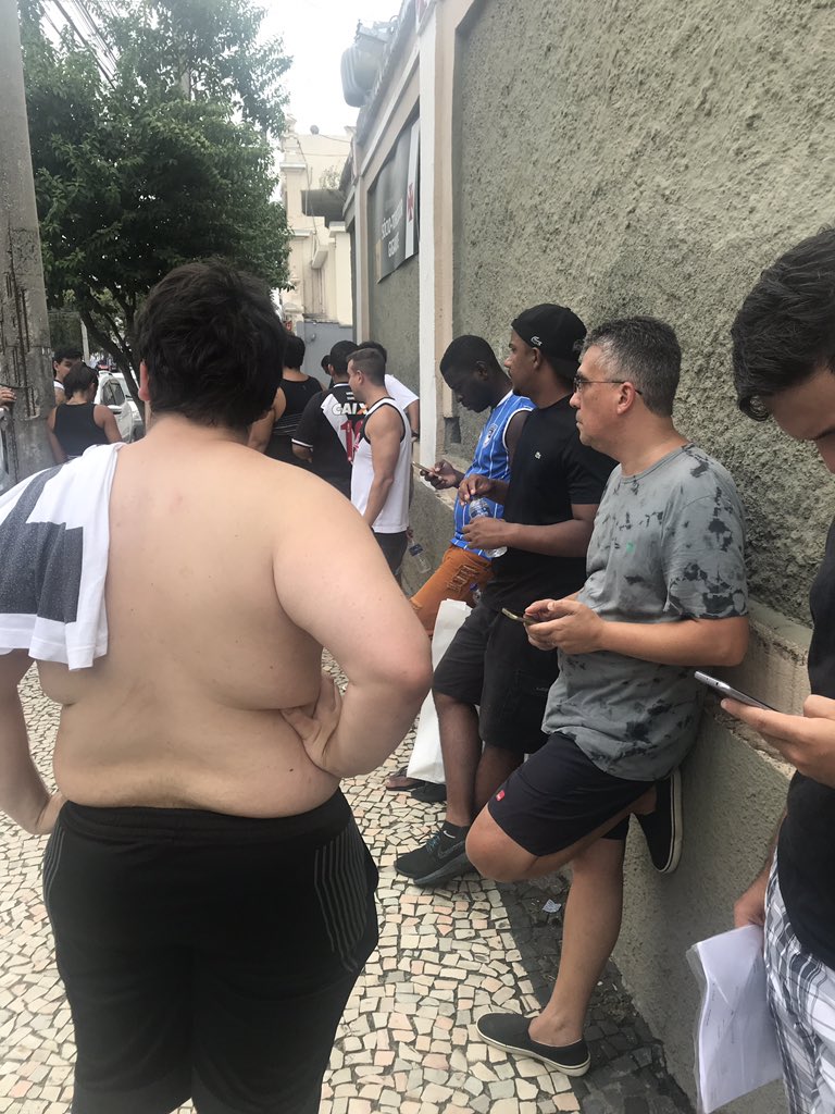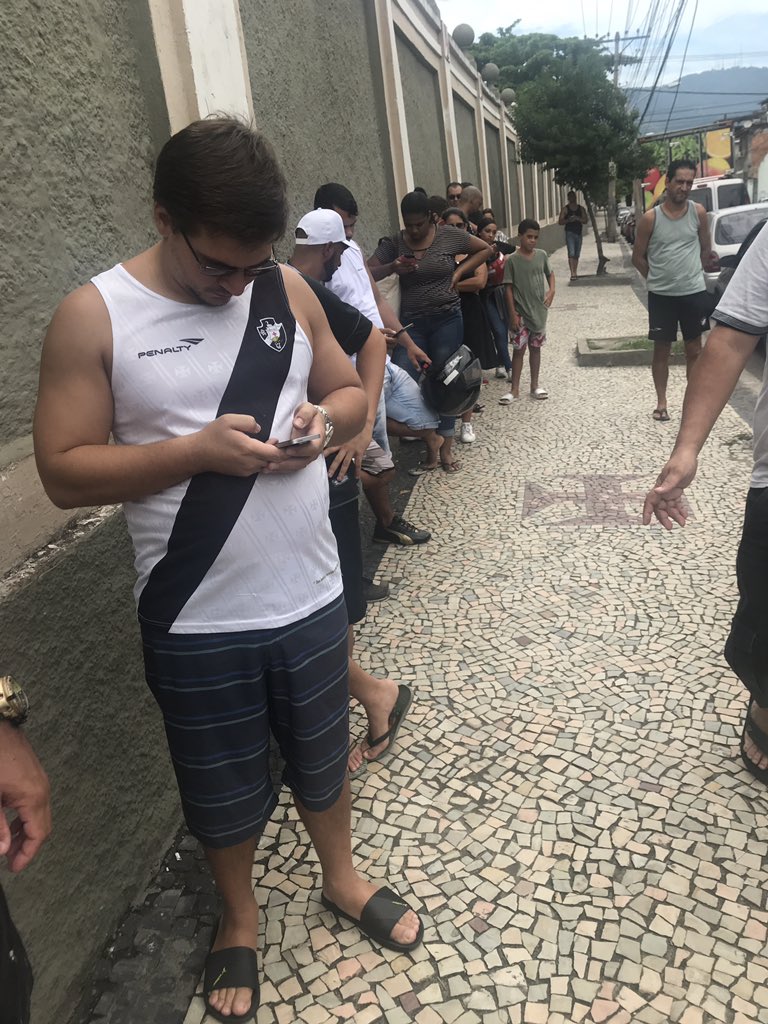 Cerca de 30 vascaínos fazem fila em São Januário para troca de ingressos, mas encontram a bilheteria fechada por conta da indefinição nos tribunais. #VasFlu
