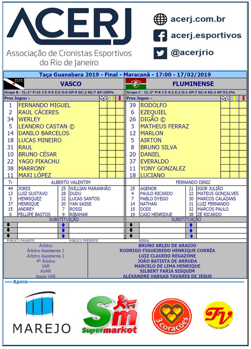 Escalações de Vasco e Fluminense pela Final da Taça Guanabara 2019 no Maracanã #acerjinforma #VASXFLU #cariocão2019 #omaischarmoso #omaisvisto