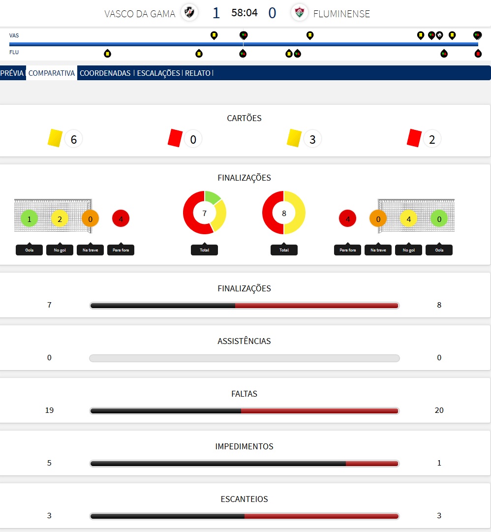 Confira as estatísticas de Vasco 1 x 0 Fluminense