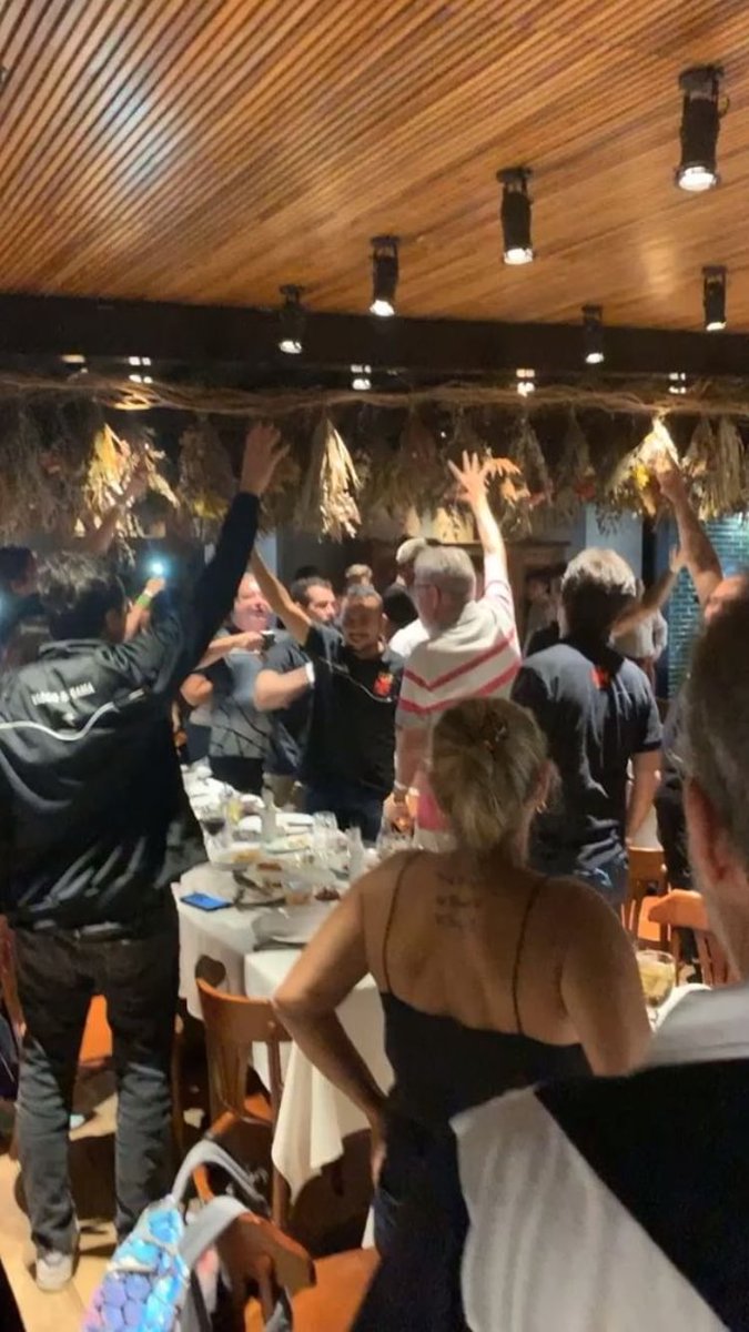 Elenco campeão confraterniza em restaurante após o título da Taça Guanabara.