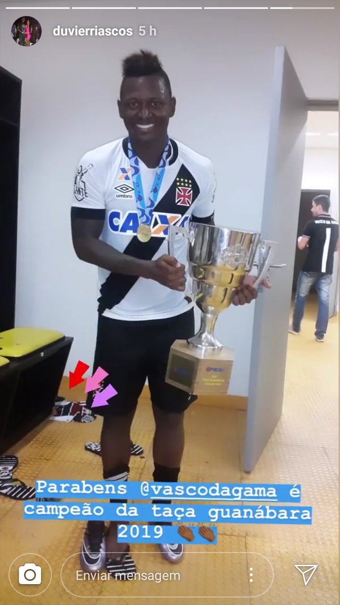 Riascos parabeniza Vasco pela conquista da Taça Guanabara e publica foto em rede social; veja