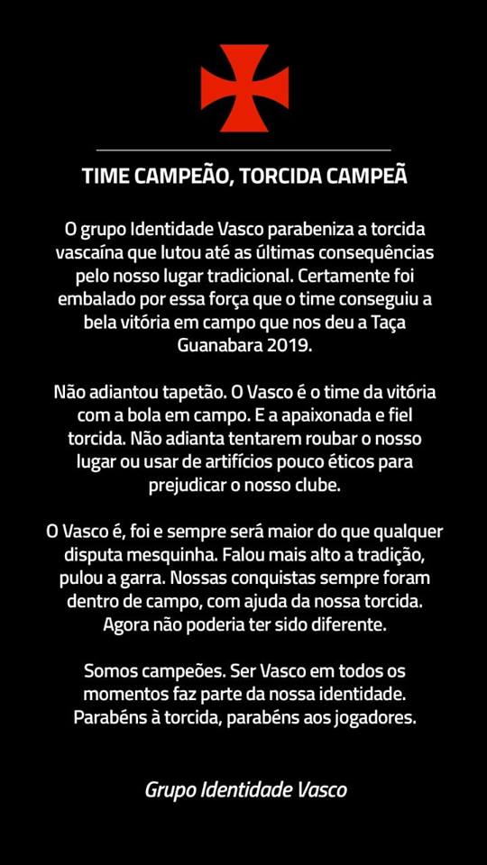 Identidade Vasco divulga nota sobre a decisão da Taça Guanabara