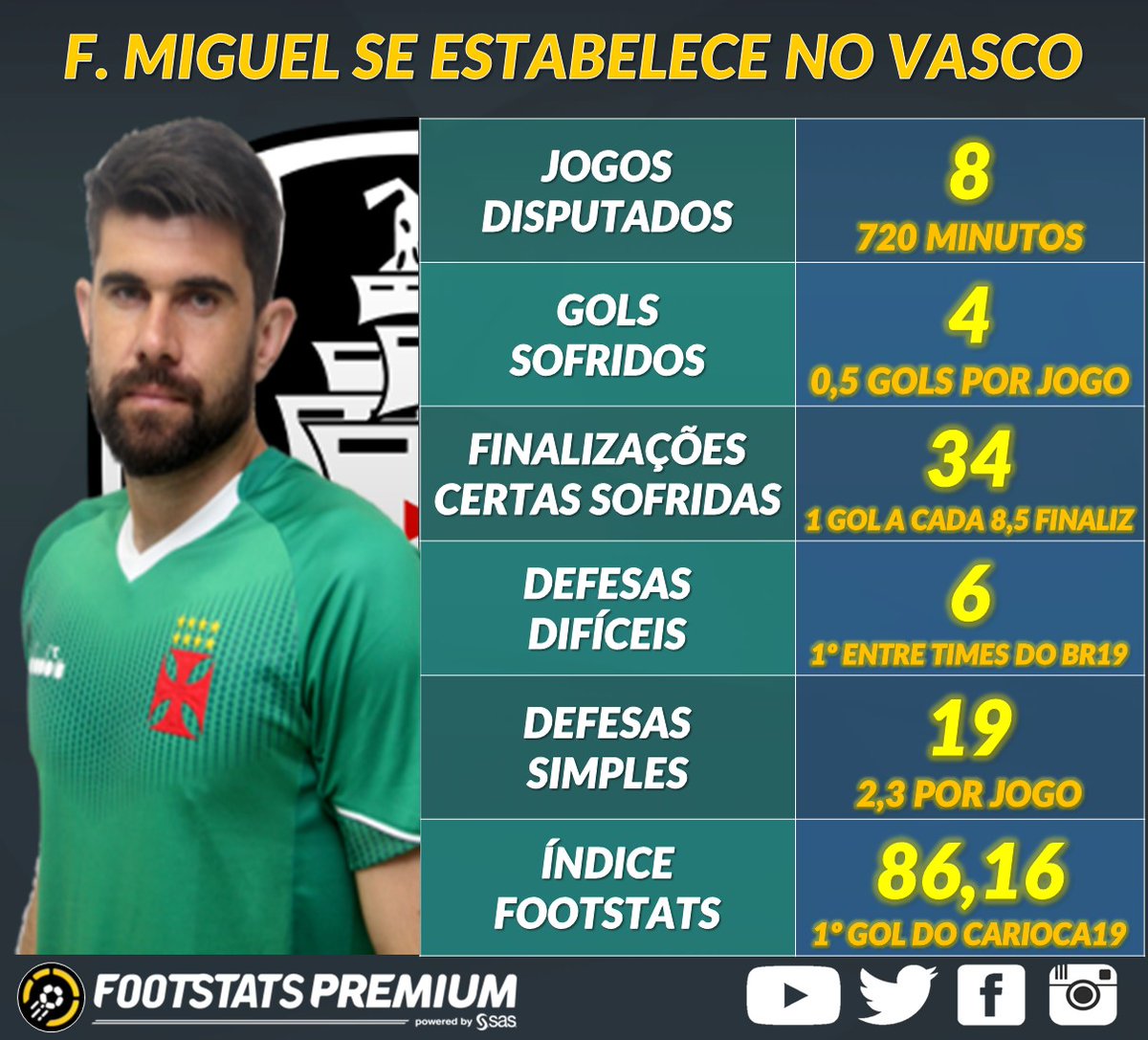 Tem ainda a ótima marca de 1 gol sofrido a cada 8,5 finalizações dos rivais e lidera o Índice Footstats entre os goleiros do CAR19