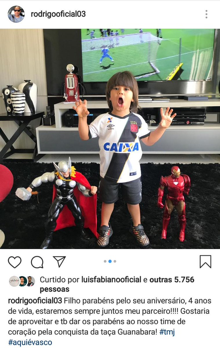 Em post parabenizando o filho pelo aniversário, ex-zagueiro Rodrigo chama o Vasco de 'nosso time do coração'