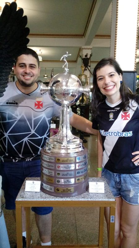 Minha emoção foi tao grande que, quando vi a taça da Libertadores, fui para abraçá-la e meu marido me segurou na hora, porque eu não sabia que poderia pegar. Minha intençao era abraçá e beijá-la. É lindo demais lá.