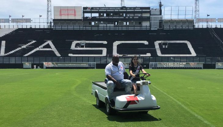 Essa visita que fiz a São Januário foi surreal, porque passou um filme na minha cabeça parecia tudo tão distante, tão longe, ficar vendo pela TV e, de repente, eu estava lá. Fui bem tratada por todas e dirigi o carrinho. Quando passava o jogo na TV e passava o carrinho da maca eu fala pro meu pai que iria dirigir esse carrinho.