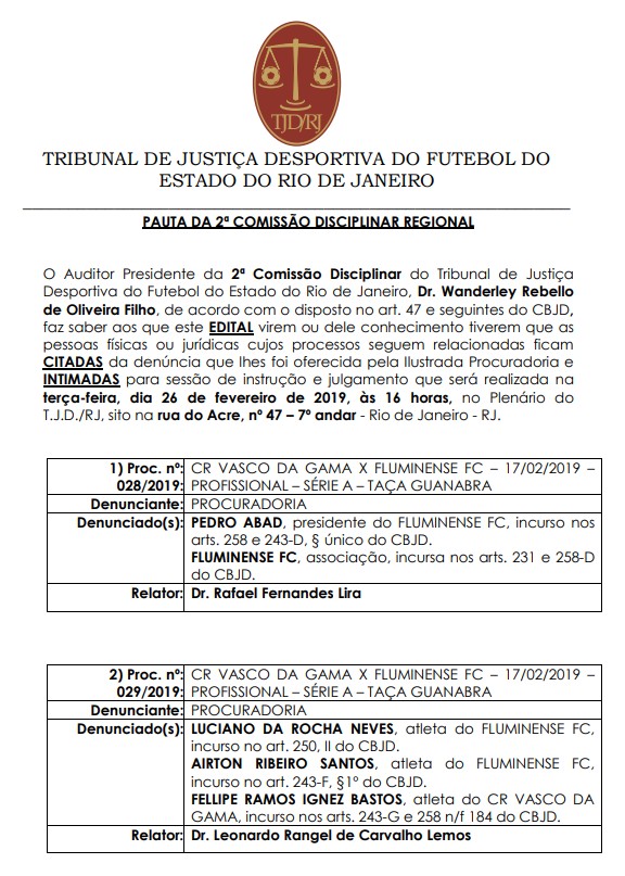 O volante Fellipe Bastos, do Vasco, também será julgado e no mesmo dia do Fluminense e do presidente Pedro Abad. O jogador foi enquadrado no artigo 243 G e 258 do CBJD. Pode pegar até de 16 jogos de suspensão #FutGloboRadio