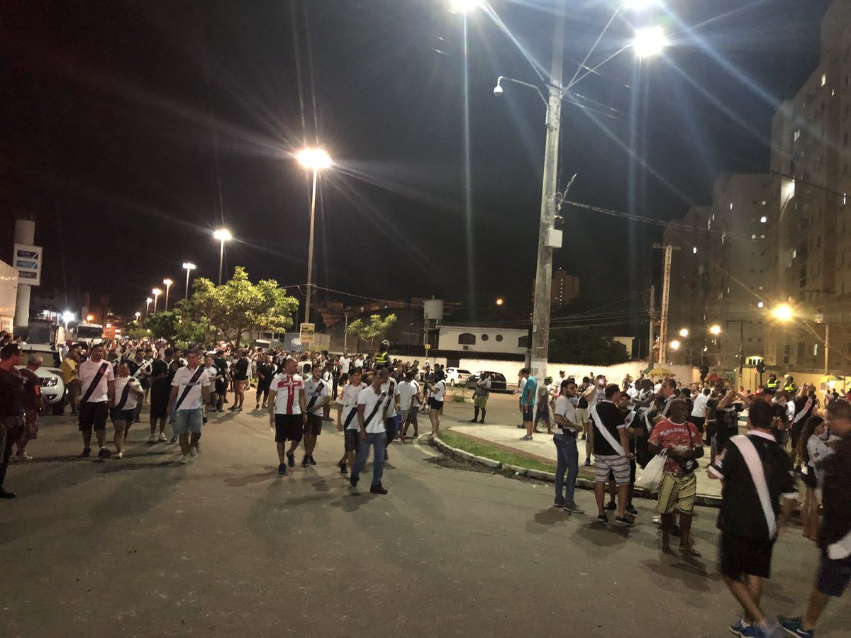 Os vascaínos vão lotado o entorno do estádio Kleber Andrade, no Espírito Santo, onde o Vasco enfrenta o Serra pela Copa do Brasil. 12 mil e 500 ingressos foram vendidos com antecedência.