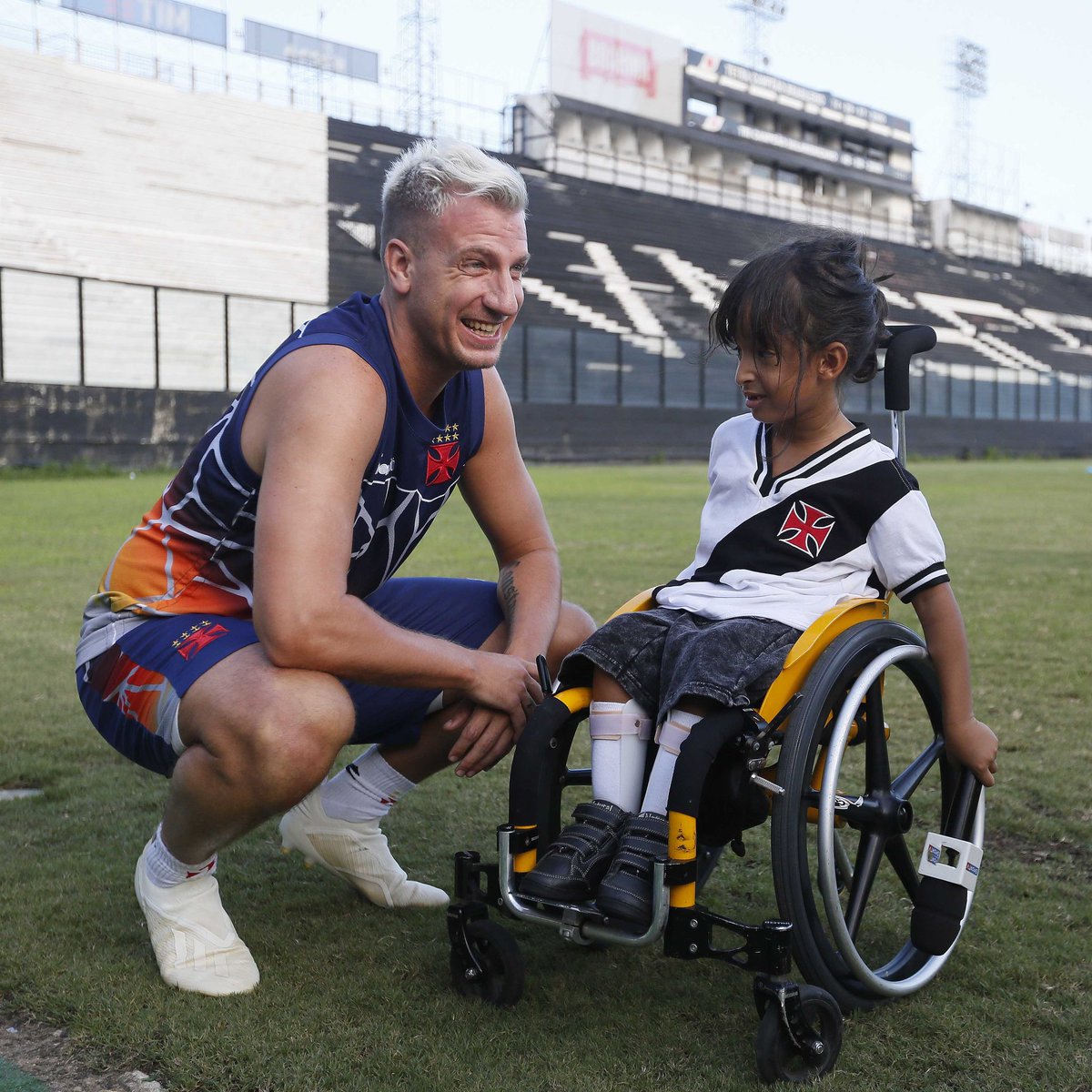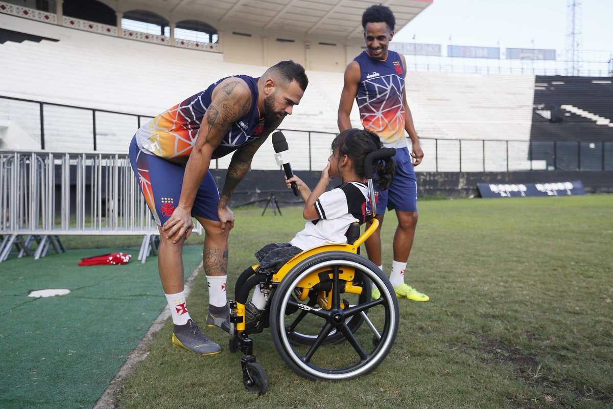 Pequeno torcedor Heitor vai ao treino do Vasco, entrevista Leandro Castan e tira foto com Maxi López