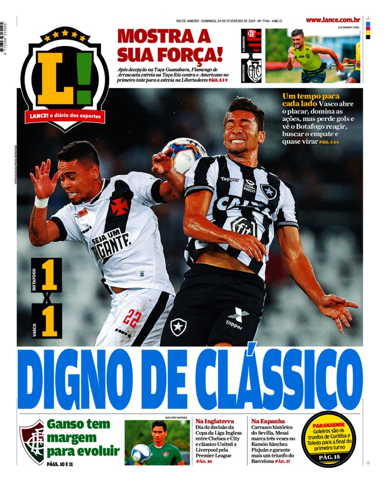 Pela 1ª rodada da Taça Rio, o Vasco empatou com o Botafogo na noite de sábado no Engenhão. Veja como a imprensa destacou o clássico.