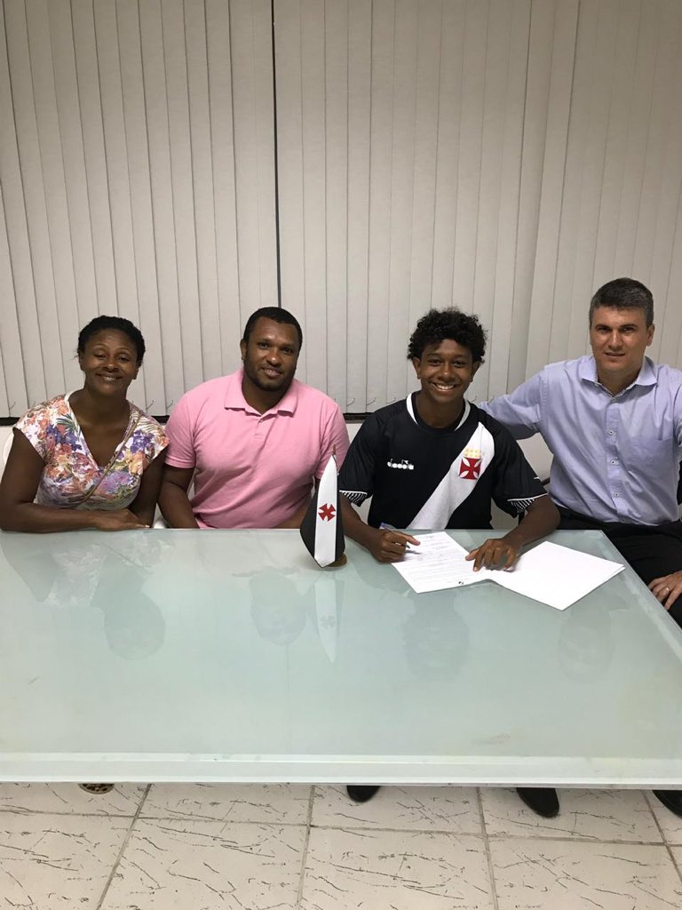 Conhecido como Paquetá, volante do sub-15 do Vasco renovou por mais três anos com o clube hoje. A família dele é vizinha da família do meia Paquetá, do Milan #gevas