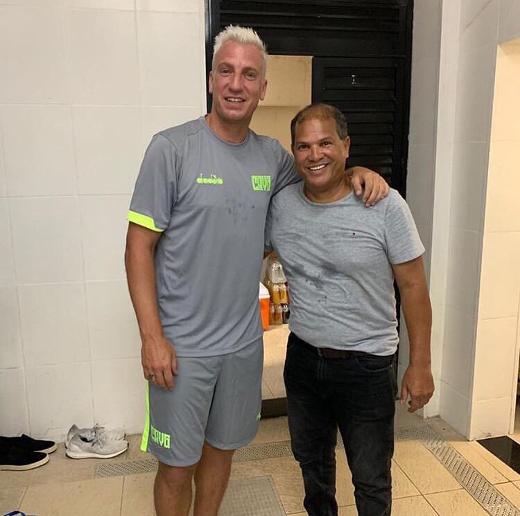 Ídolo Geovani esteve em São Januário e cumprimentou Valentim e jogadores