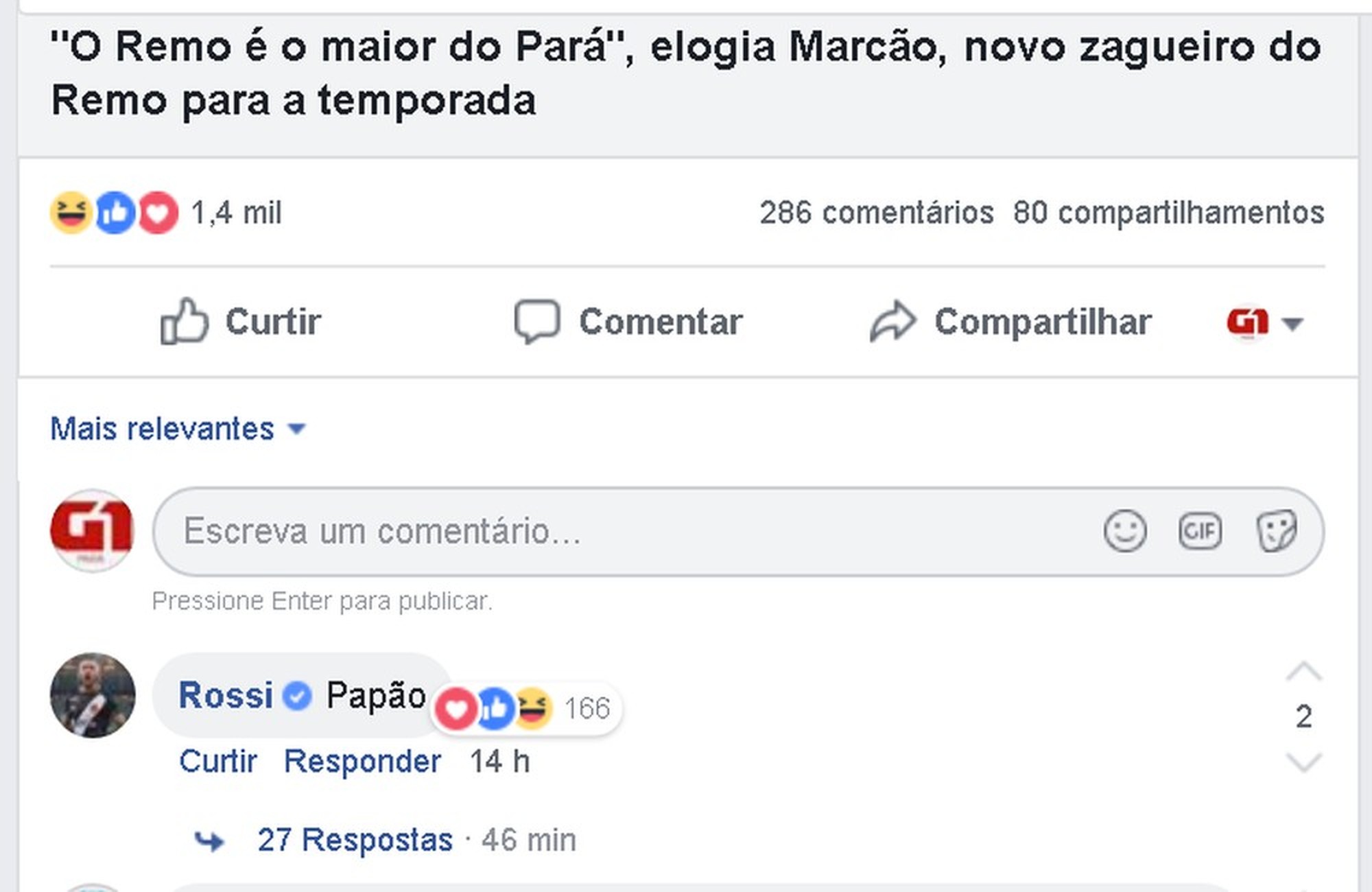 Porém, teve quem se manifestasse de maneira contrária, colocando o Paysandu em patamar maior diante do rival. Uma dessas opiniões a favor do Lobo Alviceleste veio do Rio de Janeiro. O atacante Rossi – que é paraense de Prainha, município do Baixo Amazonas -, jogador do Vasco da Gama, através da página do Oliberal.com no Facebook, rebateu o defensor azulino.