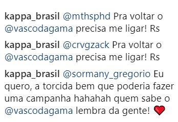 No Instagram, Kappa cita Cruz de Malta, diz que quer voltar para o Vasco e pede que torcida faça campanha