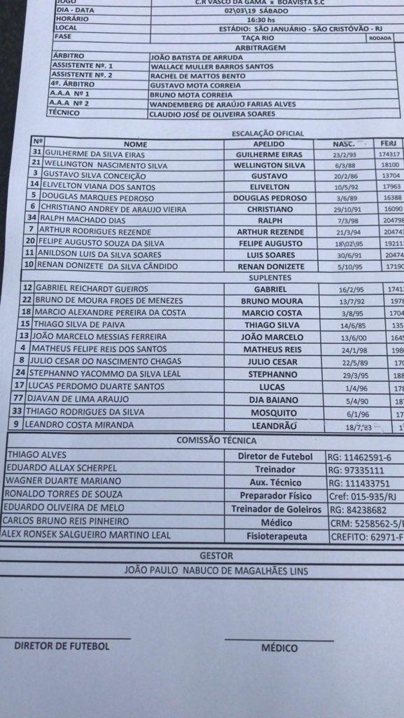 02/03/19 - Confira os desfalques de Vasco e Boavista