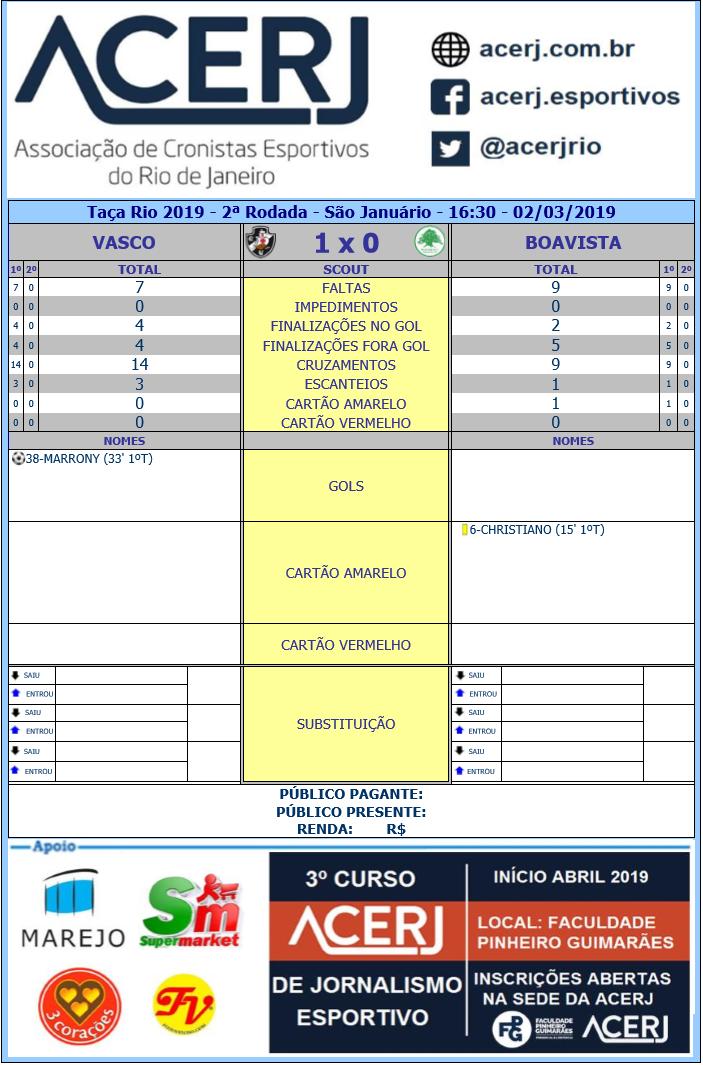 Scout do 1º tempo de Vasco e Boavista pela 2ª Rodada da Taça Rio 2019 em São Januário #acerjinforma #VASXBOA #TacaRio2019