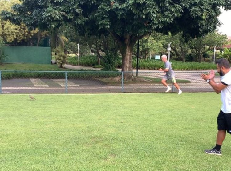 Segunda de Carnaval e o 🚜 segue suando a camisa. Ao lado do coordenador científico Daniel Gonçalves, Maxi aprimorou a parte física nesta tarde.