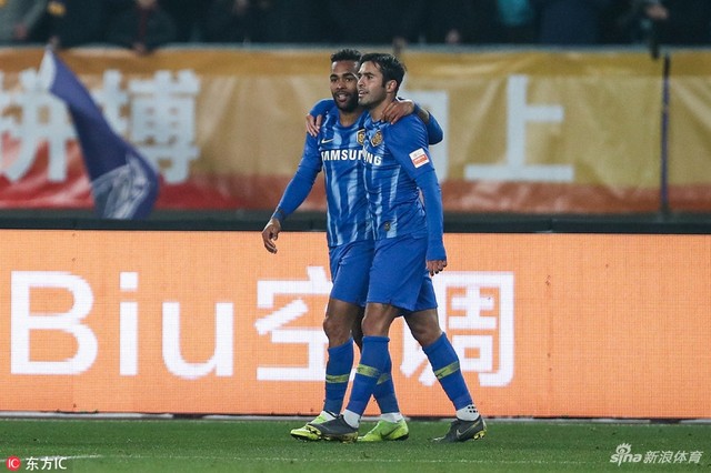 Alex Teixeira abriu o placar aos 44 minutos do primeiro tempo, depois de brigar pela posse da bola dentro da área do Tianjin, ganhar uma dividida e bater para o funda das redes. Para ser validado, o gol precisou ser revisto pelo árbitro com o auxílio do VAR, uma vez que o brasileiro estava entre a zaga e o goleiro - mas o "passe" veio de um defensor.
