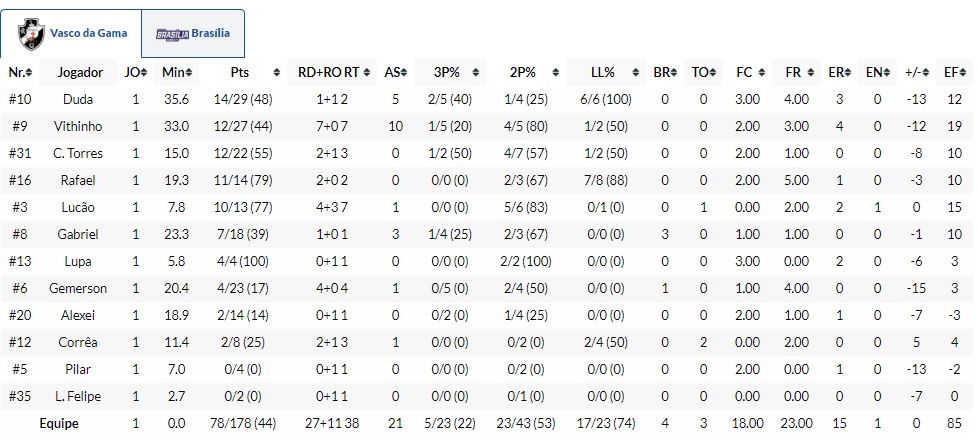 O Vasco entrou em quadra nesta quinta-feira (7/3) pelo NBB e acabou superado pelo Brasília por 94 a 78. O cestinha do Cruzmaltino no jogo foi Duda, com 14 pontos. O armador Vithinho foi o destaque, com 12 pontos, 10 assistências e sete rebotes.