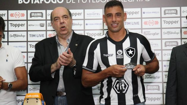 "Hoje eu não quero nem lembrar de onde eu joguei. Hoje, eu estou feliz aqui, estou feliz com essa chegada, feliz no Botafogo", afirmou o novo camisa 7, que foi logo interrompido por uma salva de palmas dos torcedores presentes. "Motivado para jogar, jogar um bom futebol e fazer gols", completou.