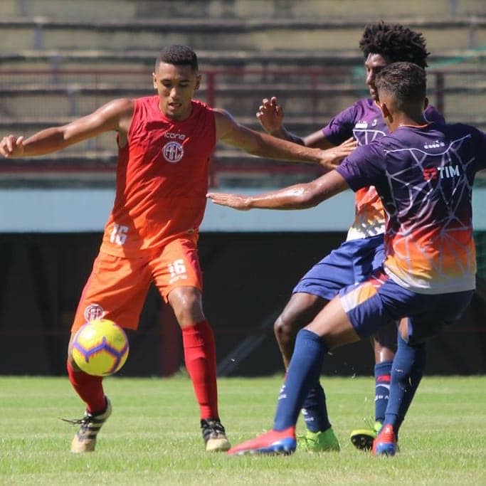 Segundo time do Vasco sub-20, com vitória do America por 1 a 0: Segundo time: Halls (Fintelman), Nathan, Arthur, Menezes (Vitor) e Riquelme (Breno); Bruno (Michael), Juninho, Roger, Gabriel Pec e Pederzoli (Pedro); Werick. #gevas