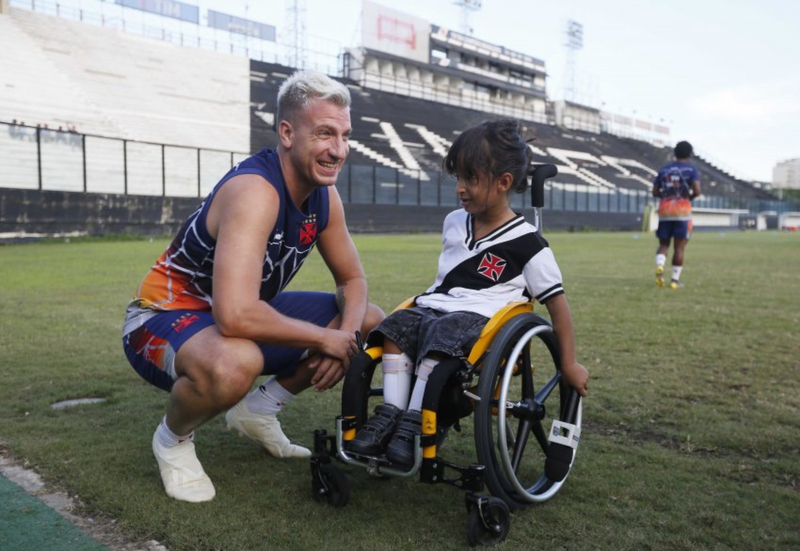 O jovem vascaíno teve a chance de acompanhar um treino do Vasco recentemente. Visitou o vestiário e deu até entrevista. Neste sábado, ele vai voltar ao Maracanã pela primeira vez para torcer no clássico contra o Flamengo.