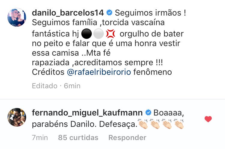 Fonte: Instagram do jogador Danilo Barcelos, Instagram do jogador Fernando Miguel
