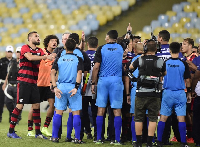 O clássico entre Flamengo e Vasco terminou em confusão. Ainda no gramado, os jogadores rubro-negros cercaram o árbitro Wagner Magalhães, que acabou expulsando o atacante Bruno Henrique já com a partida encerrada.
