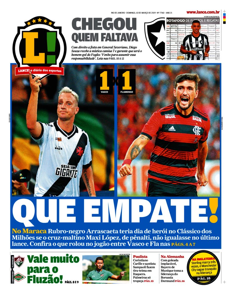 Veja como a imprensa destacou o empate entre Vasco e Urubu