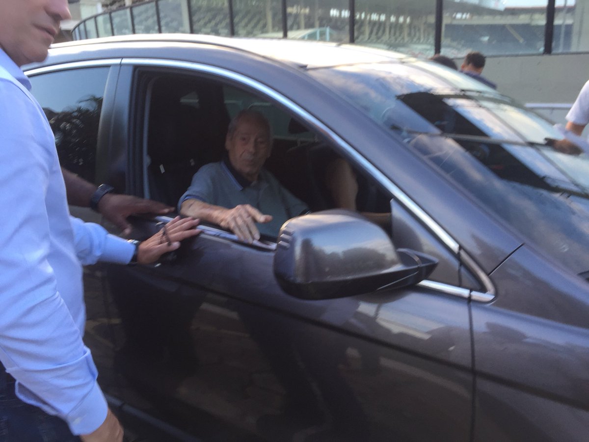 Aos 96 anos, Antônio Soares Calçada chega com a esposa Marlene para o velório #gevas