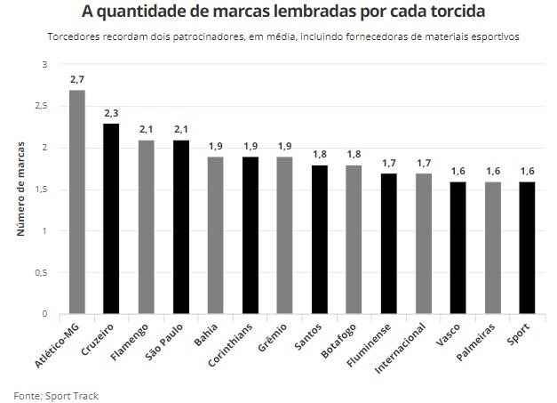 O brasileiro lembra, em média, de duas marcas entre todas as que orbitam em volta do clube para o qual torce – ou, precisamente, 1,9.