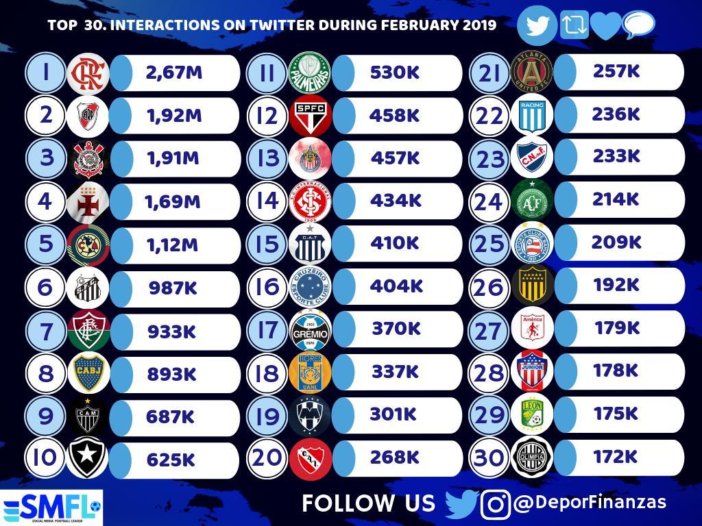 Vasco da Gama ficou em 4° lugar em interações no Twitter em Fevereiro de 2019.