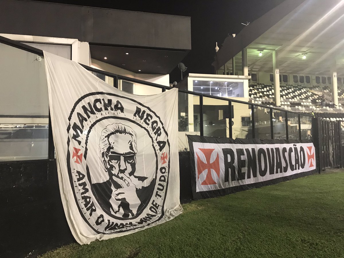 A torcida Mancha Negra colocou bandeira em homenagem a Eurico Miranda atrás do gol da piscina. Ao fundo, a sala que o ex-presidente acompanhava os jogos e costumava fumar charuto durante as partidas #FutGloboRadio