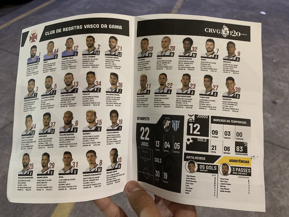 Veja o material de divulgação do jogo desta 5ª-feira com informações dos jogadores do Vasco