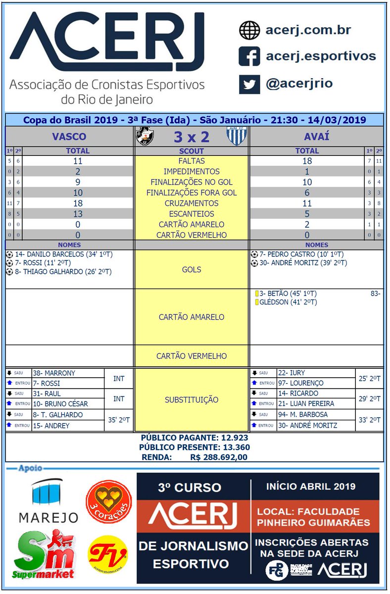 Scout Final de Vasco e Avaí pela 3ª Fase (Ida) da Copa do Brasil 2019 em São Januário #acerjinforma #VASxAVA #CopadoBrasil2019 #CopaDoBrasil