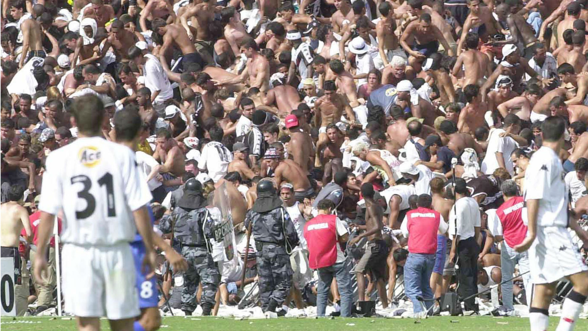 Mais precisamente, a peça foi usada em 2001. E isso explica boa parte da polêmica. Vasco da Gama e São Caetano eram os finalistas. No jogo de ida, empate por 1 a 1, e no duelo de volta realizado em São Januário, o encontro foi interrompido depois que o alambrado da casa vascaína desabou. Foram 168 feridos, mas apesar do acontecido o dirigente Eurico Miranda insistia para que a partida fosse retomada. Com a negativa, não poupou críticas à TV Globo, que transmitia a final. Insatisfeito pela cobertura do acontecido e com o adiamento daquela decisão.