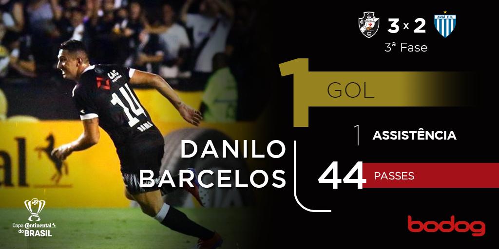 Confira os números do lateral Danilo Barcelos, do @VascodaGama, na vitória de ontem contra o @AvaiFC. ⚽📈 | @Bodog_Brasil