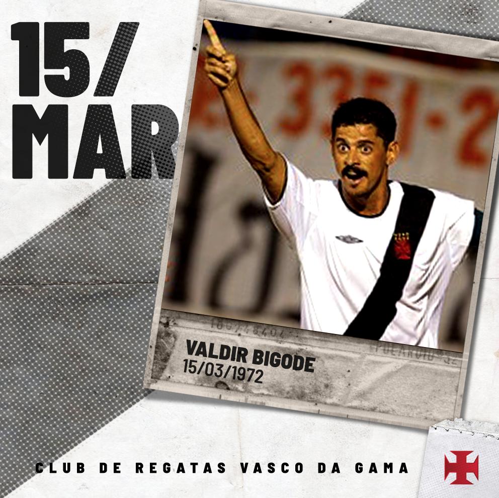 Vasco parabeniza o aniversariante Valdir Bigode em rede social
