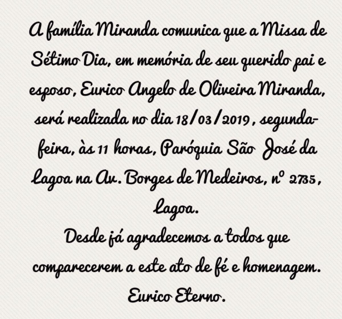 15/03/19 - Vascaínos de Brasília convidam para missa de 7º dia de Eurico Miranda na 2ª-feira às 18h30